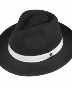 This narrow-brimmed hat is made of a warm new wool blend, as well as a functional, water-repellent Teflon coating.With its classic look, it can be worn to all events and special occasions. With a lightweight lining and fabric lining band.