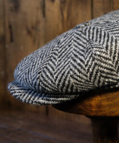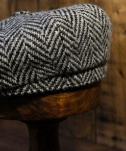 The “Eight Piece White & Black Herringbone Wool Newsboy Cap”, a timeless accessory that exudes classic charm and sophistication. Crafted from high-quality tweed wool fabric, this cap combines durability with style, making it a versatile addition to your wardrobe.