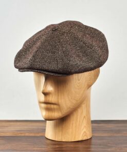 The “Eight Piece White & Black Herringbone Wool Newsboy Cap”, a timeless accessory that exudes classic charm and sophistication. Crafted from high-quality tweed wool fabric, this cap combines durability with style, making it a versatile addition to your wardrobe.