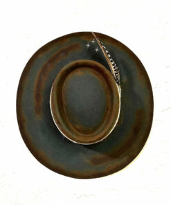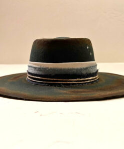 “Night Sky custom burned flat brim wool felt cowboy hat” is handcrafted, hand-dyed and hand-distressed. That means no two hats have the same color or character, making each hat truly one of a kind. Unique to each hat.